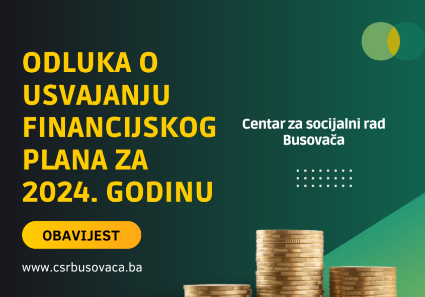 U prilogu dostavljamo odluku o usvajanju financijskog plana u iznosu od 591.480,00 KM prihoda i 591.480,00 KM rashoda J.U. Centra za socijalni rad Busovača za 2024. godinu. ODLUKU U CJELOSTI MOŽETE PREUZETI OVDJE