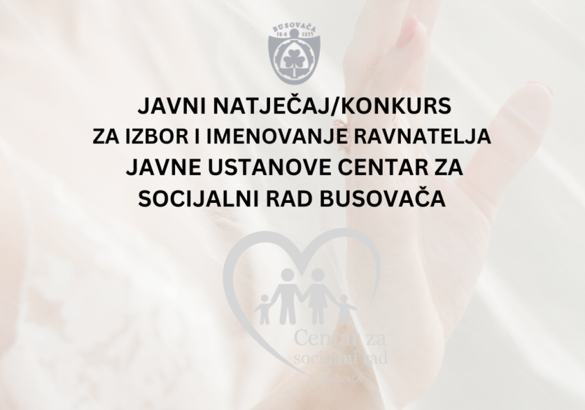 JAVNI NATJEČAJ/KONKURS ZA IZBOR I IMENOVANJE RAVNATELJA/DIREKTORA J.U. CENTAR ZA SOCIJALNI RAD BUSOVAČA